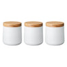 Perfect for storing dry goods such as teabags, coffee, sugar, rice or pasta, the Denby Set of 3 White Storage Canisters is made from galvanised steel with a contemporary matt finish and stylish Acacia wooden lids with a complete seal to keep contents fresh.